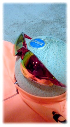 優勝の景品ですが、サングラスと、狙ったかのように…メロンが入っていました。 家に帰って記念に写真をパシャリと撮ってあげました。